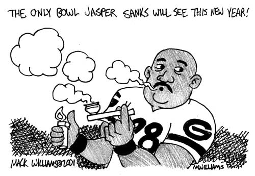 ![]() Jasper Sanks. He got kicked off the football team. Everyone has heard the rumors that he was hitting the left-handed lucky, but they're still just that...rumors. So this cartoon would be libelous or whatever. Oh well. I can still publish it on my website! Back to Unpublished Cartoons |