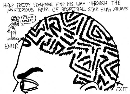 ![]() Am I the only one who noticed how ridiculous Ezra Williams's hair looks? It must take like 5 hours to get it like that. Anyway, his brother got shot, so the editors said it might not be so nice to make fun of him. So I waited. And then the dawgs got eliminated from the NCAA tourney. Maybe his hair will still be like this next year...I doubt it. Back to Unpublished Cartoons |